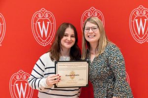 Hannah receiving a research award