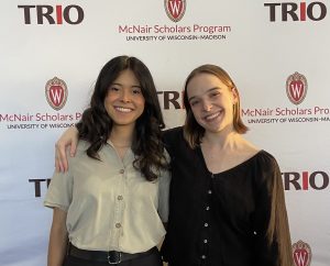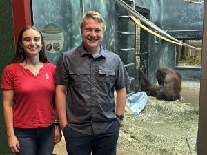 Sam (BA, 2025) and Gracie (BS, 2025) with Menjadi at the Henry Vilas Zoo